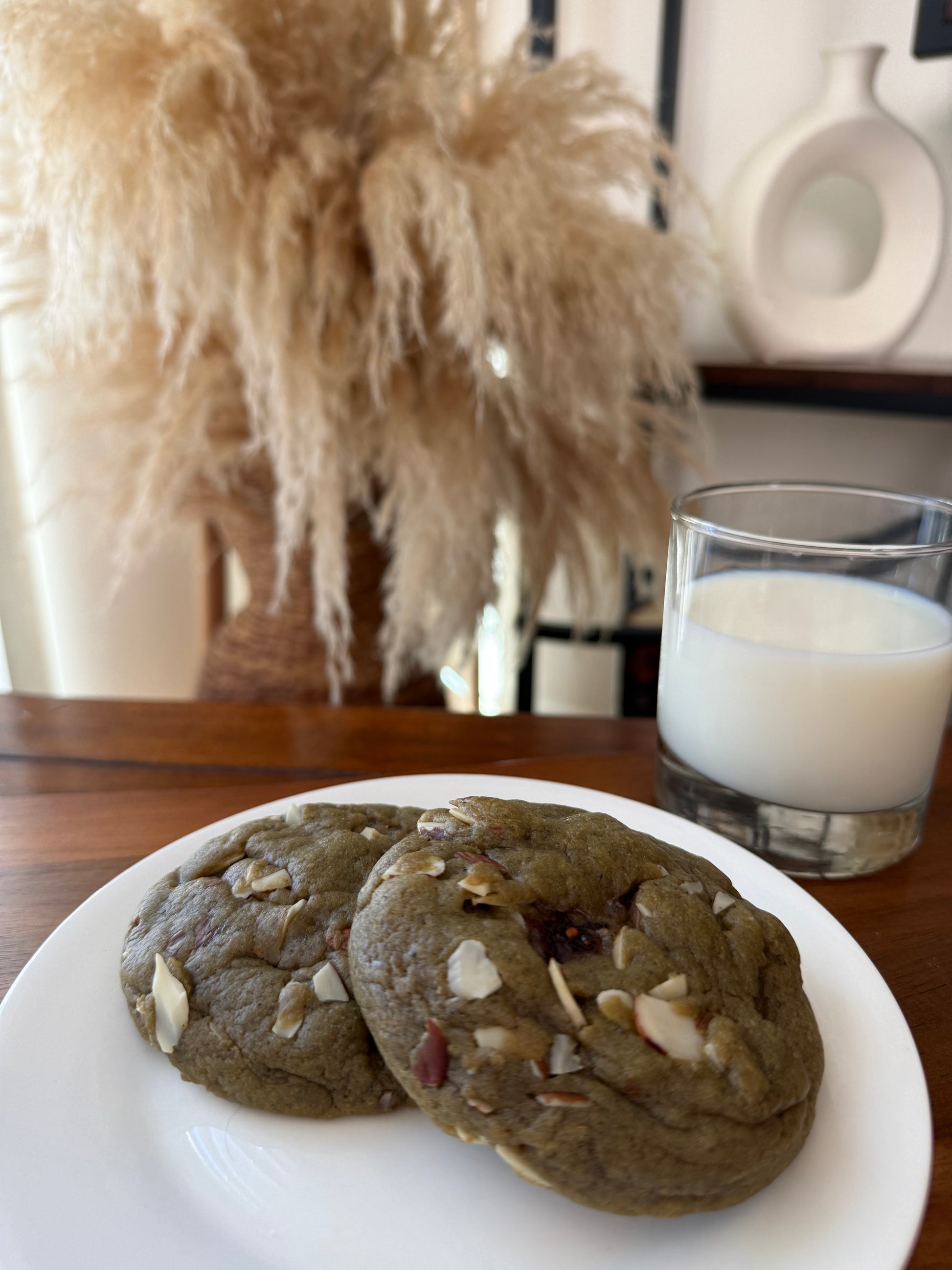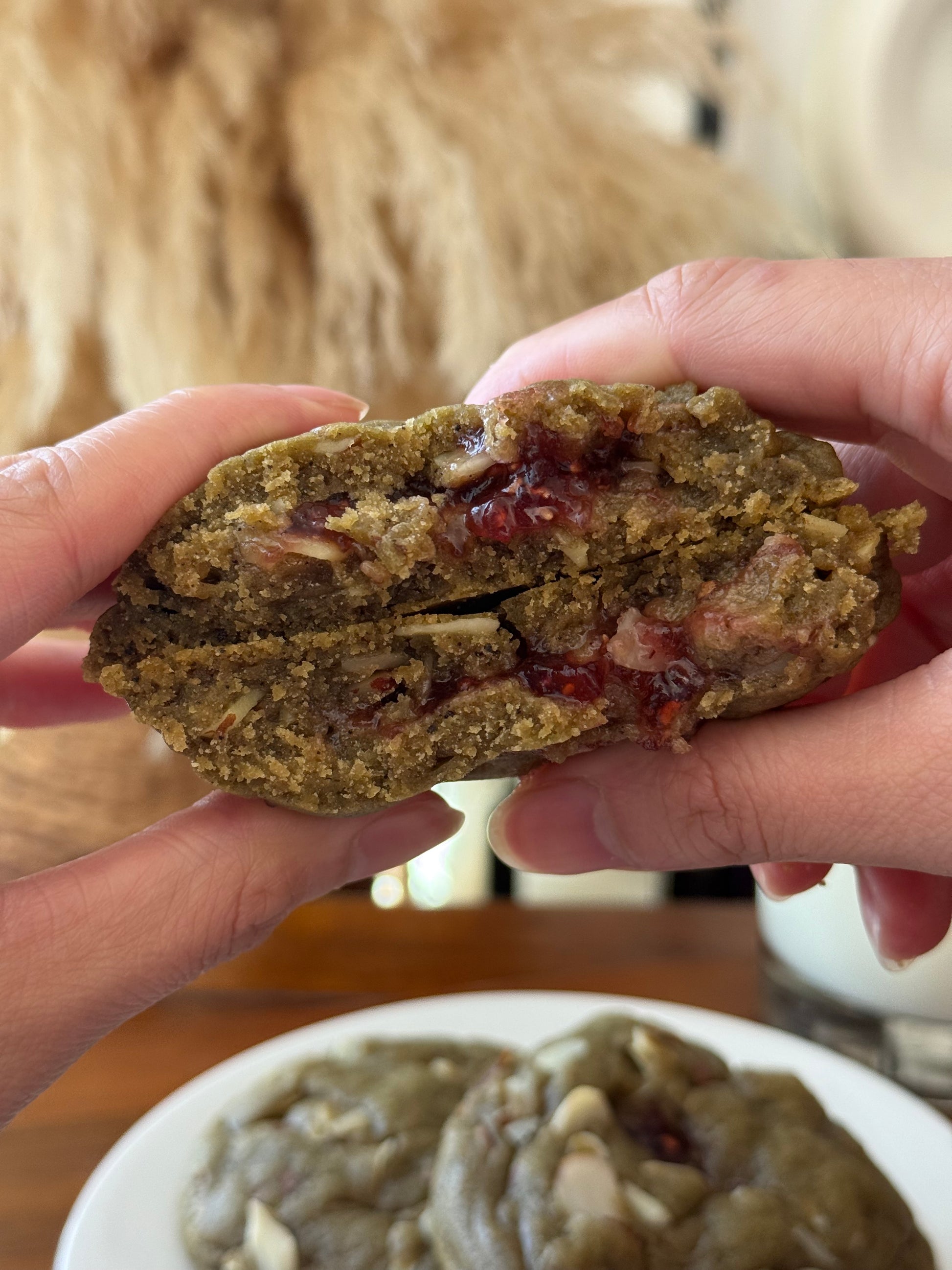 Earthy matcha meets tangy raspberry preserves and crunchy slivered almonds in a vibrant, Instagram-worthy cookie. Crisp edges, soft, chewy center, and bursts of fruity flavor make this cookie as beautiful as it is delicious.